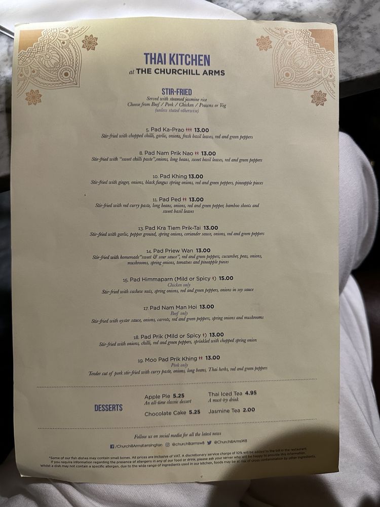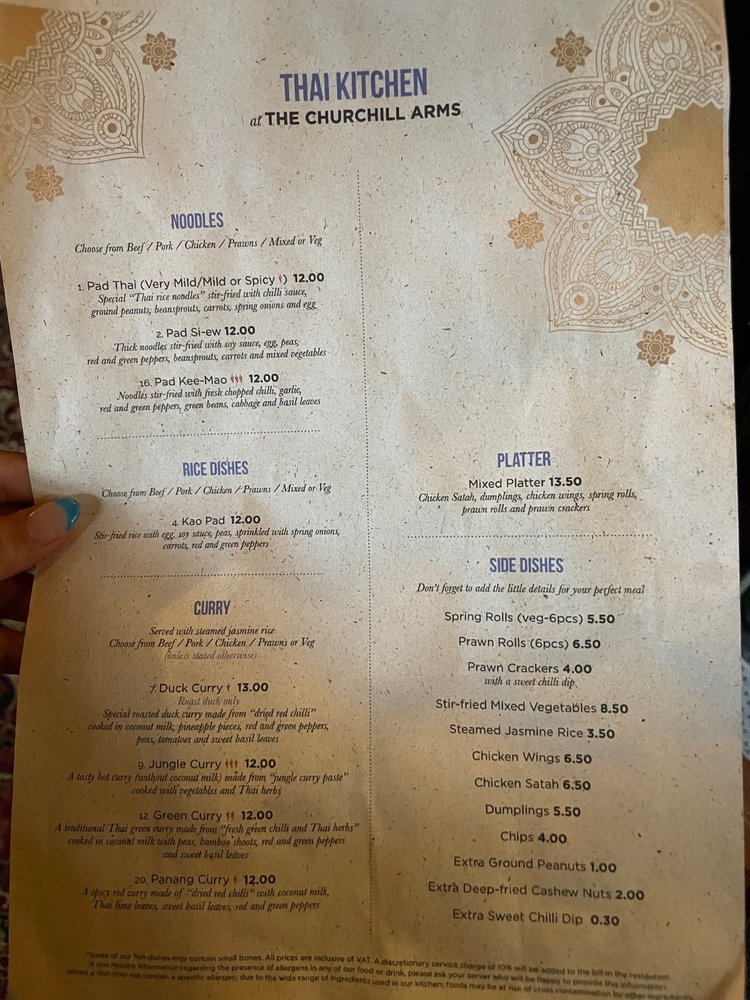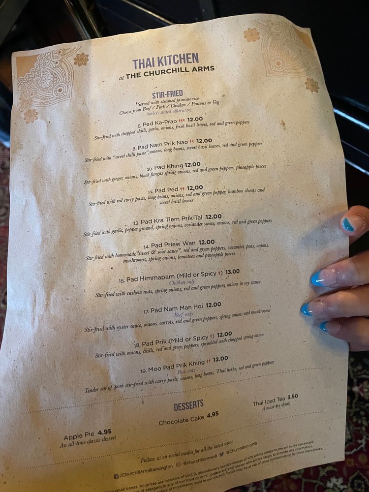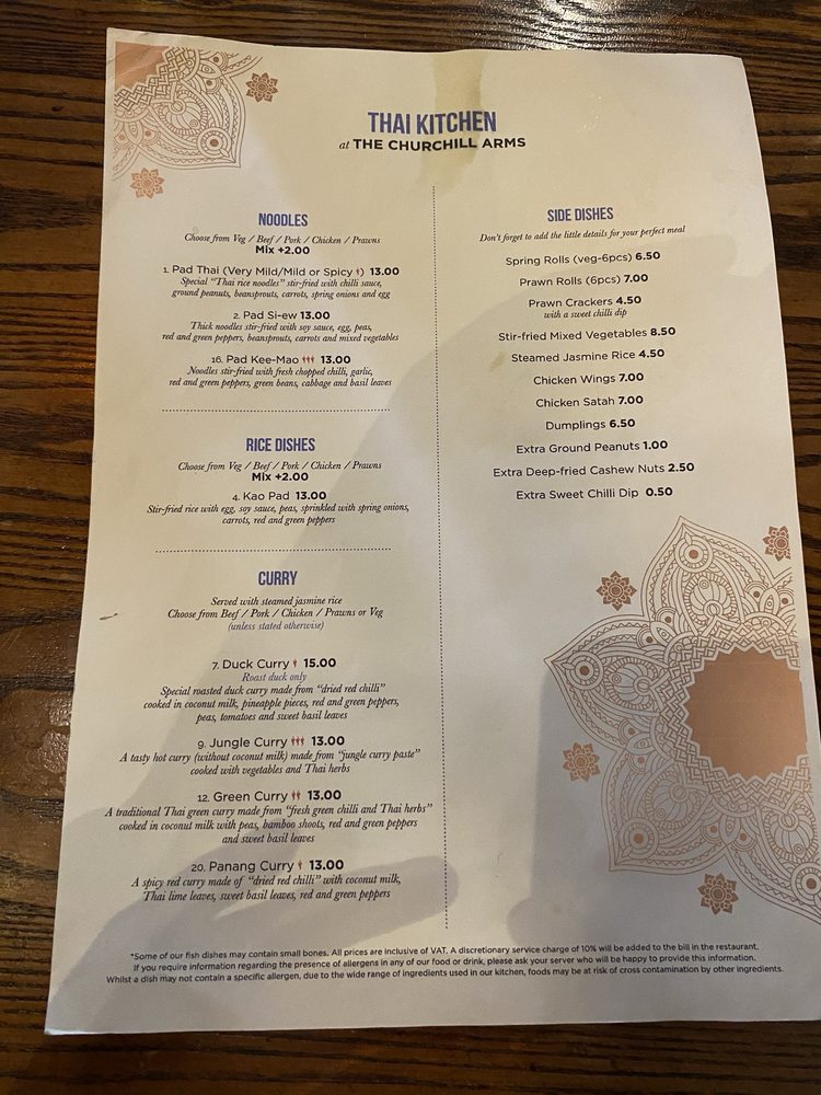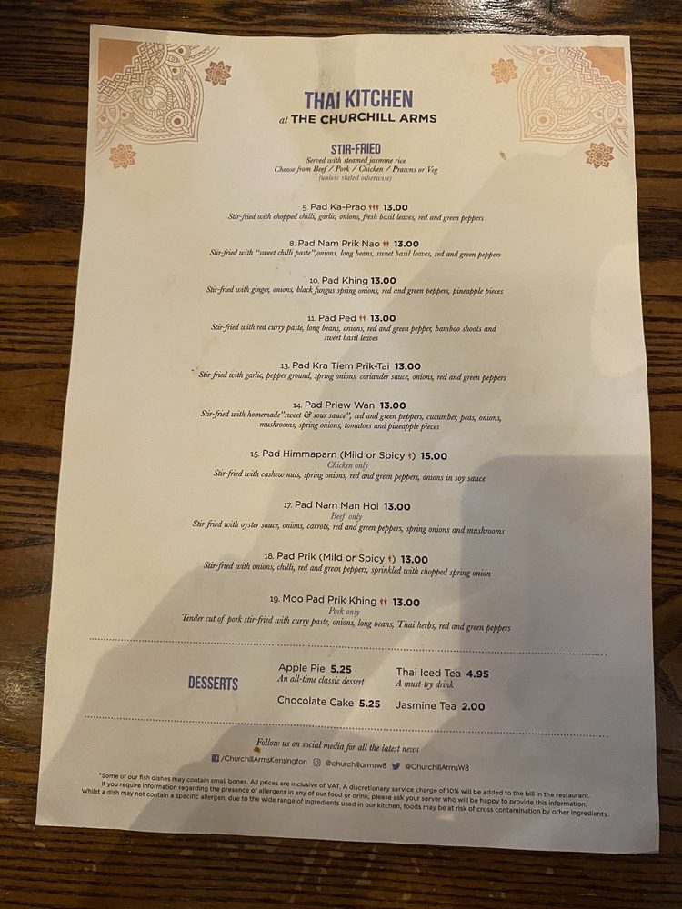 Introducing The Churchill Arms, a pub in London that offers a unique twist with its Thai cuisine. Boasting a cozy and quaint atmosphere, this pub provides a charming setting for a delightful dining experience. With a variety of vegan and vegetarian options, it caters to diverse palates. The menu features classic Thai dishes like pad Thai, dumplings, and vegetable spring rolls that have received rave reviews for their delicious taste. Customers praise the attentive service and the spicy, flavorful dishes that truly capture the essence of Thai cuisine. Whether you're looking for a casual dinner or a place to dance the night away, The Churchill Arms offers a memorable experience both inside and out. Don't miss out on this gem if you're in London!
